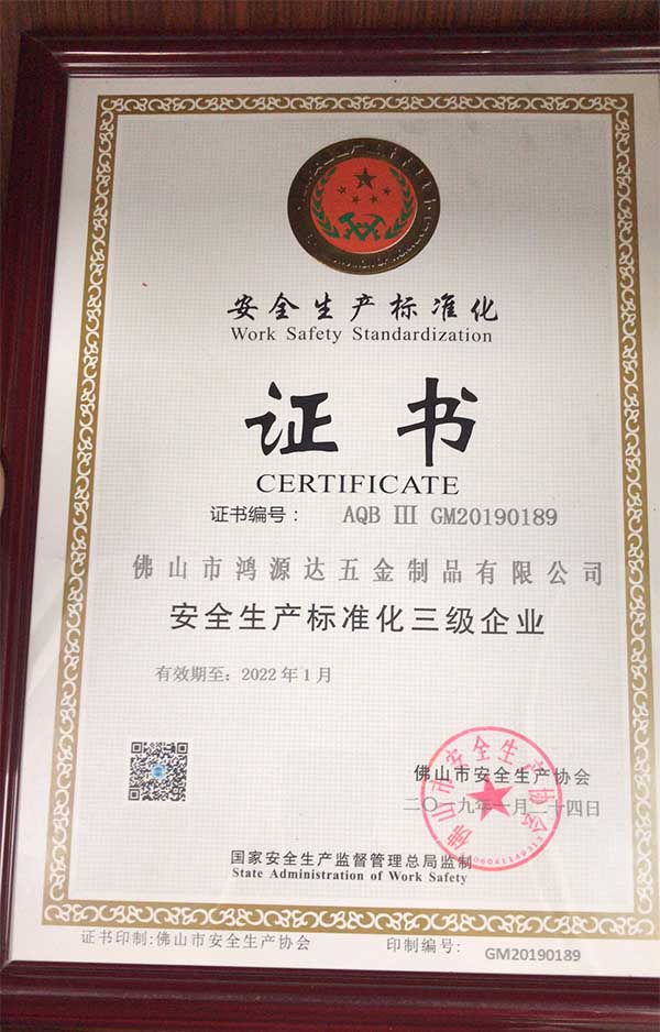 佛山市鴻源達(dá)五金制品有限公司位于廣東省佛山市南海區(qū)獅山鎮(zhèn)羅村下柏如意路8號(hào)華興工業(yè)園3號(hào)樓。公司經(jīng)過多年經(jīng)驗(yàn)的風(fēng)雨洗禮,隨著時(shí)代不斷發(fā)展壯大,是一家專業(yè)生產(chǎn)、加工、銷售的五金制品企業(yè)。